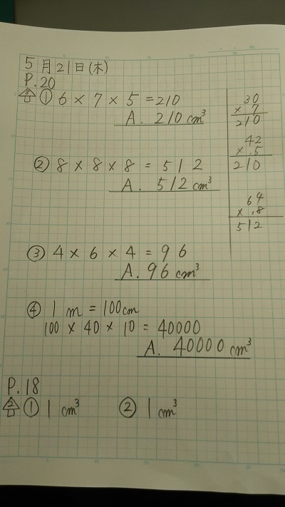 5月20日(水)算数ノート
